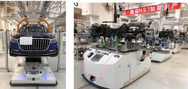 現階段,三豐正在研制新的智能組合分體承載式AGV,由前后各 1 臺承載式 AGV 組成,可分別承載5000kg 以上,有多車聯動、自動激光測距變距、載件轉彎功能、無軌自主導航技術、非接觸式供電、同步控制、精確定位、安全防護、自動上下料等功能,能實現大工件的無人化搬運作業和流水線生產,取代傳統地板式、拖鏈式輸送,滿足商用車、工程機械、農業機械等行業超長、超寬、超大機件的柔性搬運,及其快節拍、高效率的生產需求。